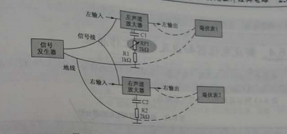 立體聲平衡調整方法:給左右聲道輸入適當的相同大小的測試信號(一般特定頻率的正弦信號,有信號發生器提供),如圖2所示,在左、右聲道輸出端分別街上毫伏表,調整平衡貼片可調電阻RP1,使兩個聲道輸出信號幅度大小相等。
