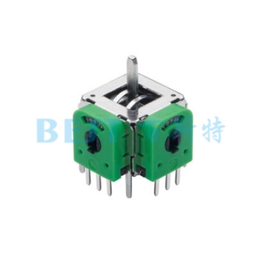 電位器RJ13-60-B103是一種搖桿式電位器,其產品特點:壽命長、有良好的操作手感、耐沖擊性好、復位歸中精度高。一般應用于游戲機手柄、電子玩具、電子遙控器等產品使用。